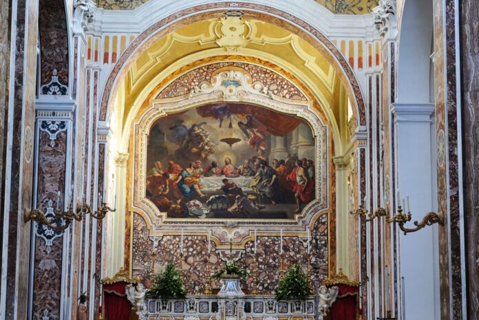 “Considerata dal mondo accademico napoletano una replica autografa dell’Ultima Cena nella chiesa dell’Annunziata di Capua (1750), la tela di Francesco De Mura, che adorna la cappella del SS. Sacramento nella Cattedrale (1755), si prende una rivincita grazie alla rilettura in chiave iconologica del professor Marcello Fagiolo, uno dei massimi esperti del barocco.