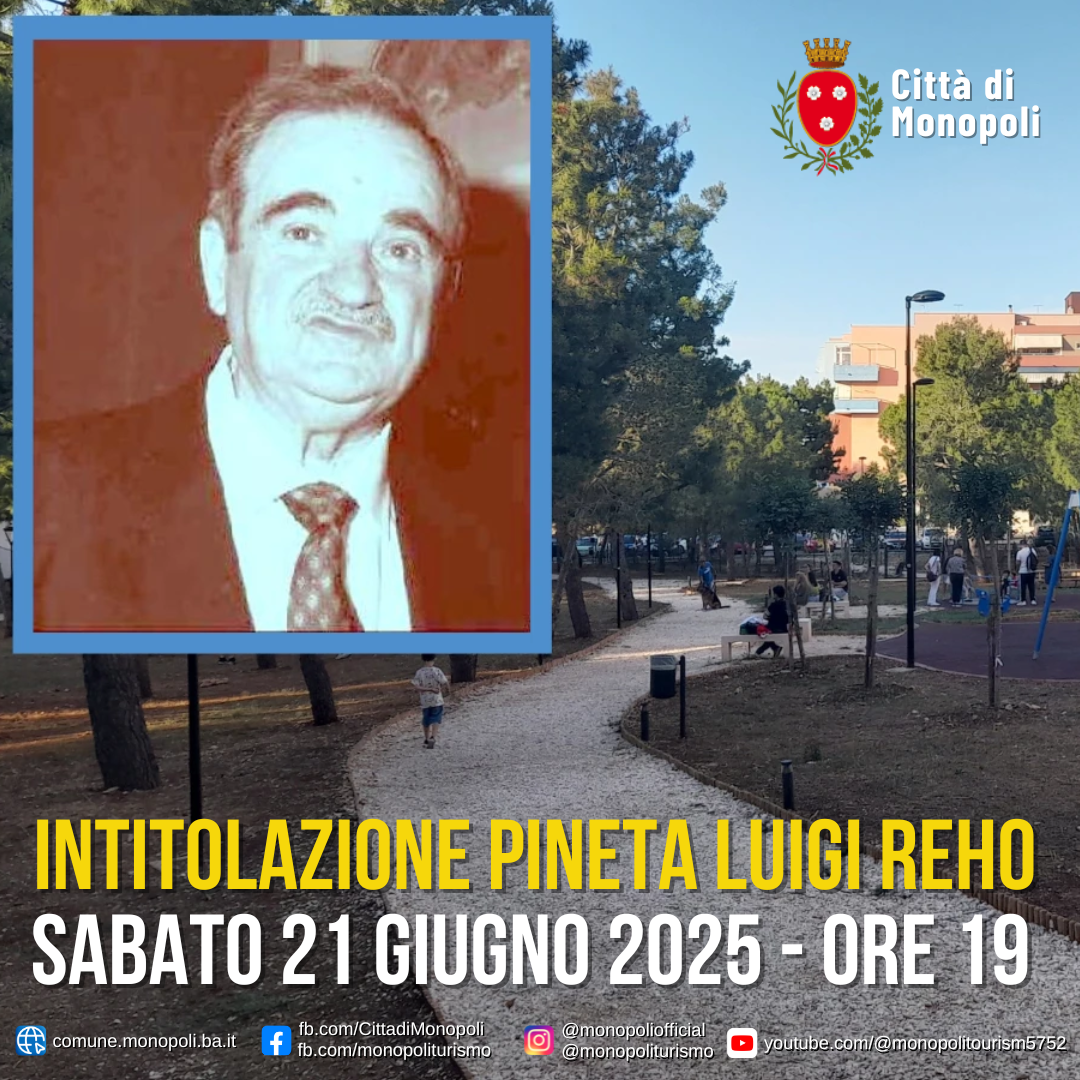 Sabato 21 giugno 2025, alle ore 19:00, si terrà la cerimonia ufficiale di intitolazione della pineta situata tra via Ludovico Ariosto e via Achille Grandi al Prof. Luigi Reho (1916–2013), così come da ordinanza sindacale n. 149 del 26 febbraio 2025.